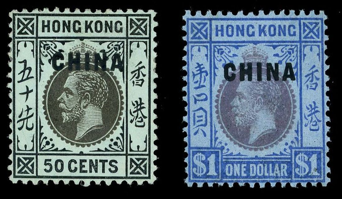 1912-21年香港加蓋CHINA客郵新票一組45枚,面值從1先至50先,整體票面顏色鮮豔,齒孔完整,原膠,上中品,請預覽