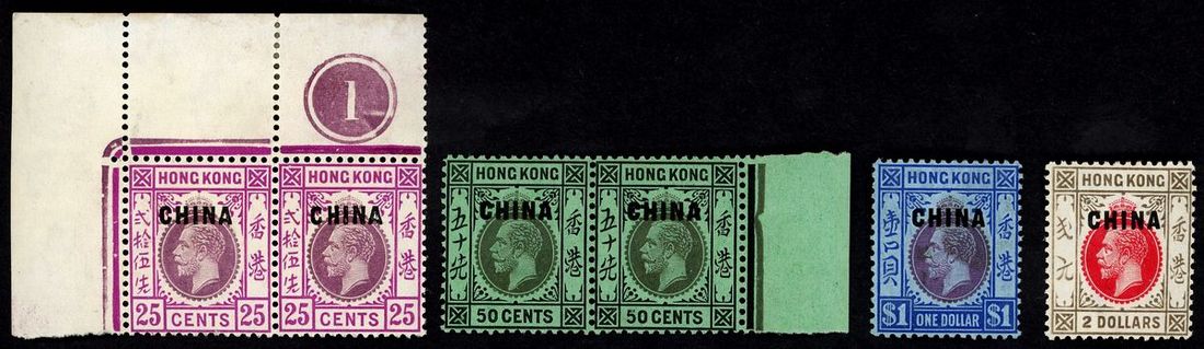 1917 - 1927 KGV ovpt "CHINA" the 2nd series, 1c to $2, with duplication, including 6 pairs, (69), mint.