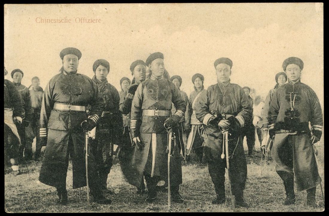 1909年青島寄德國圖畫明信片1件,貼膠州灣2分德國客郵1枚,銷青島1月26日戳,有德國2月14日到達戳,片背為大清軍士合影,保存完好