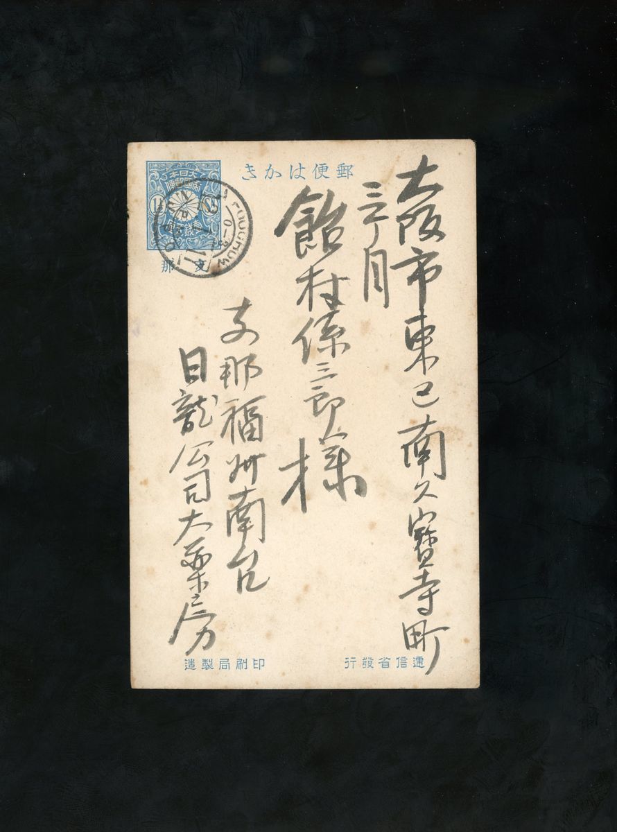 1917年福州寄日本大版日本駐華加印支那3錢郵資片1件,銷福州1月12日日本客郵英文戳,郵戳清晰,保存完好,水源明窗先生舊藏