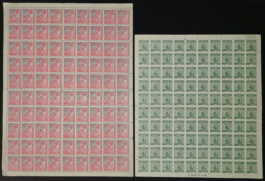 1949 (1 Jul.) 28th Anniversary of Chinese Communist Party $6500 sheet of ninety, plus South Central China $70 sheet of 100, unused.