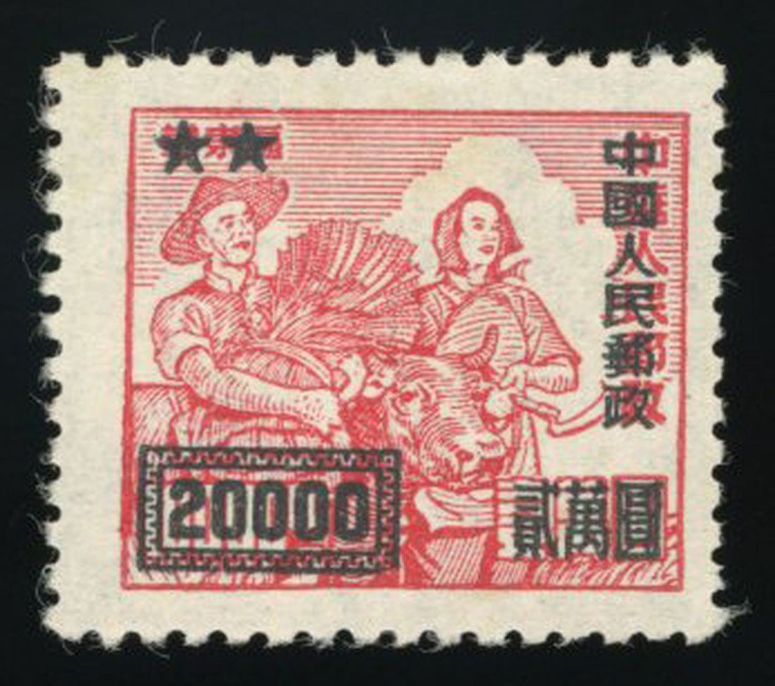 1950年改2新票1枚,票面顏色鮮豔,加蓋字模清晰,齒孔完整,上中品