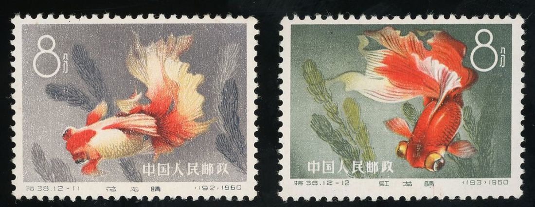 1960年特38金魚新票1套,票面顏色鮮豔,齒孔完整,原膠,膠幹,微黃,上中品