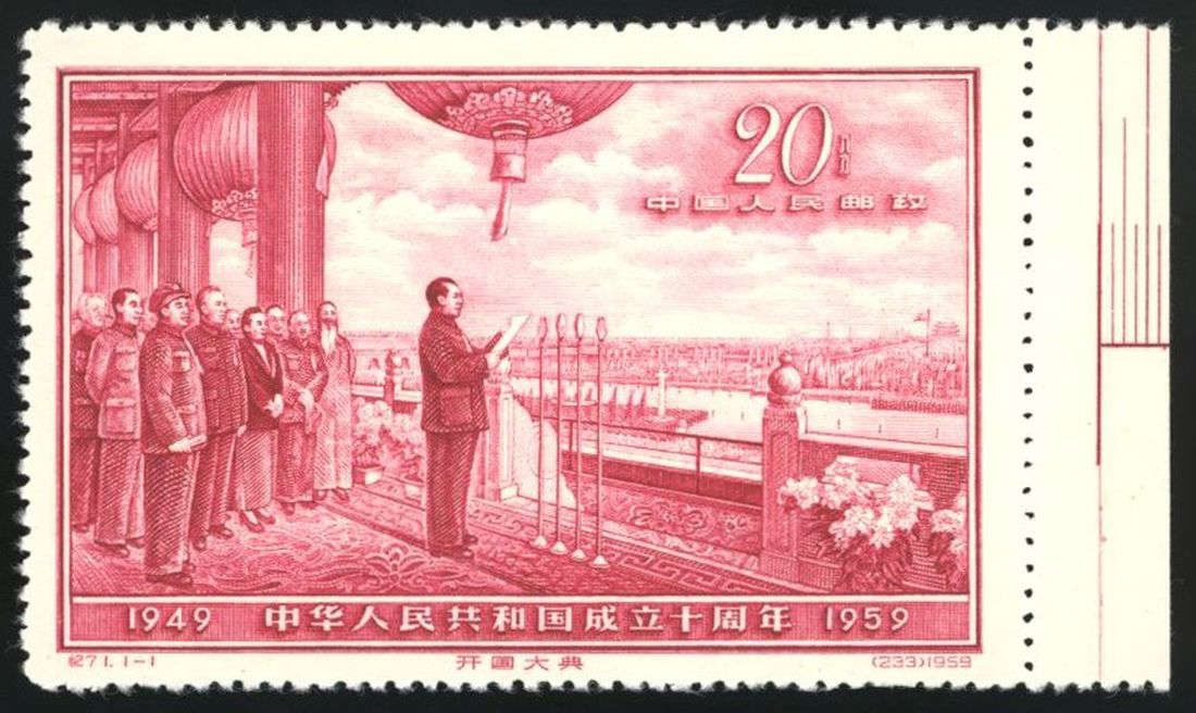 1959 (1 Oct.) C71 10th Anniversary of People's Republic of China, 20f. unused with right margin, fine.