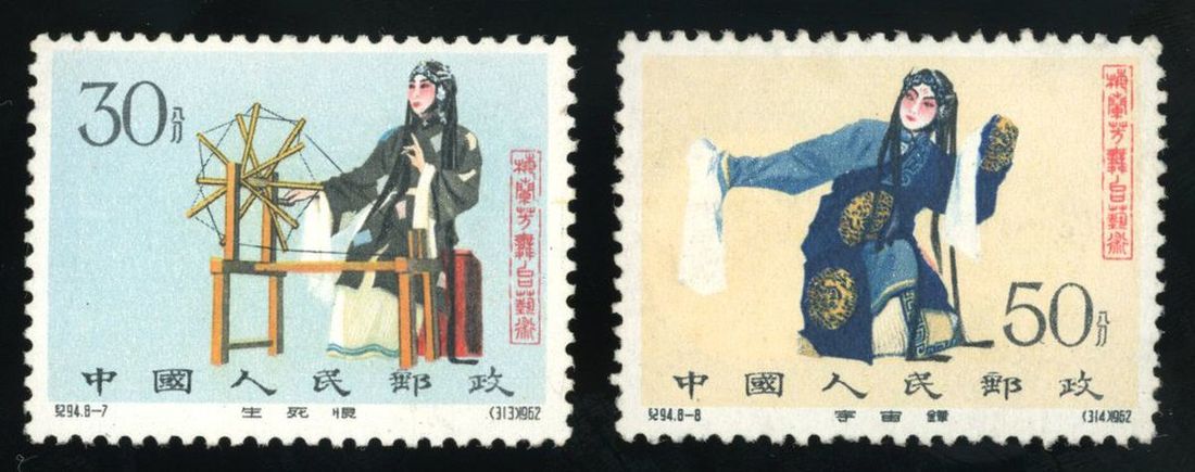 1962年紀94梅蘭芳新票1套,票面顏色鮮豔,齒孔完整,二次刷膠,上中品