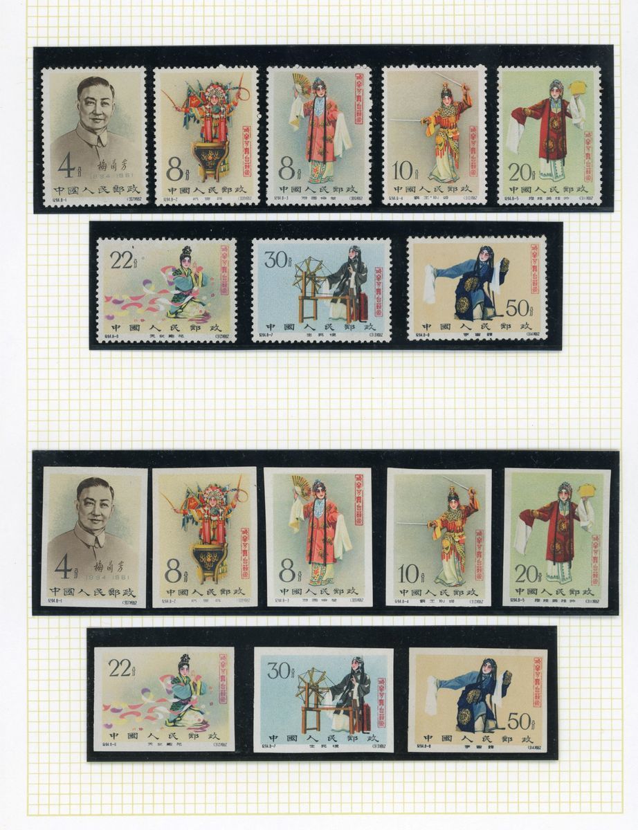 1962 (8 Aug.) C94 and C94i Stage Art of Mei Lan Fang 4f. to 50f. complete set of eight, both perf. and imperf. sets, unmounted mint, lightly toning gum not affecting their appearance, very fine.