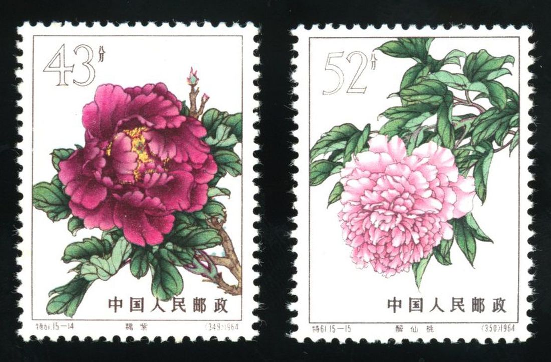 1964年特61牡丹新票1套,票面顏色鮮豔,齒孔完整,原膠,各別微黃,上中品