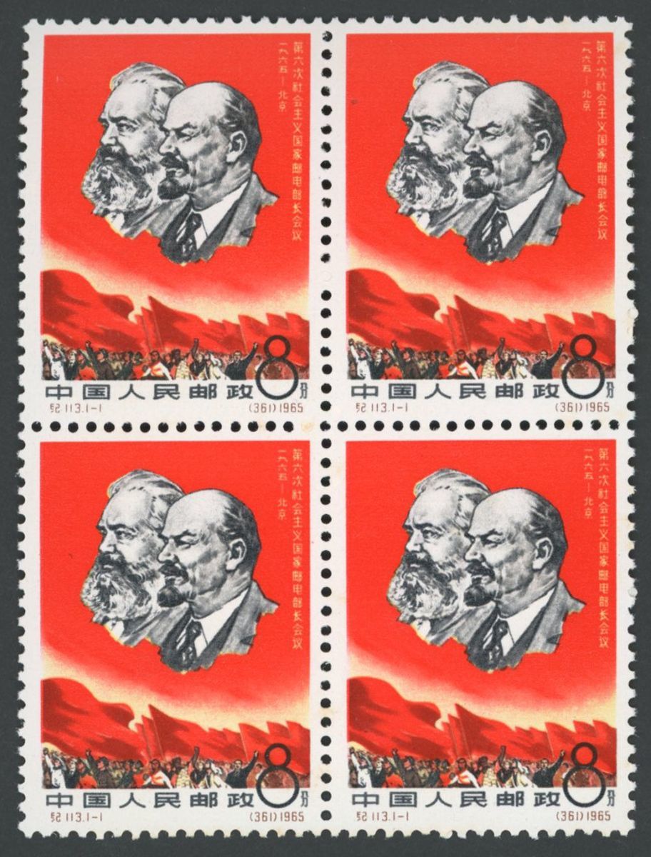 1965 (21 June) C113 "Postal Minister's Congress, Peking" 8f. block of four. Unmount mint, original gum, fine.