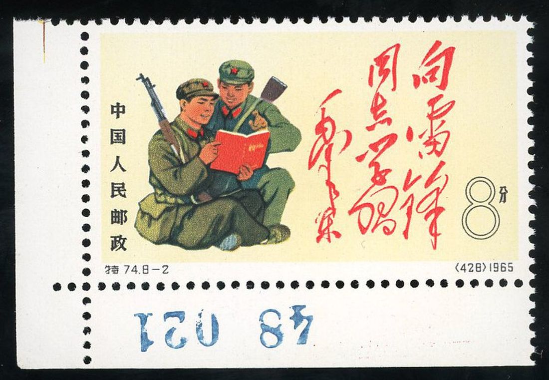 1965年特74解放軍新票3枚不同,包括毛澤東思想,學雷鋒,四好連隊,均帶左下直角邊,票面顏色鮮豔,齒孔完整,原膠,品相佳