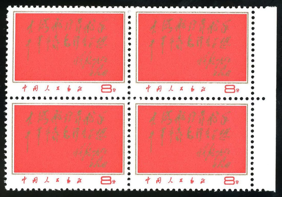 1967 (26 Dec.) Sailing the Sea Depends on Helmsman, Making Revolution Depends on Mao's Thought, set of 1, (W8) block of 4 with right margin, fine unmounted mint.