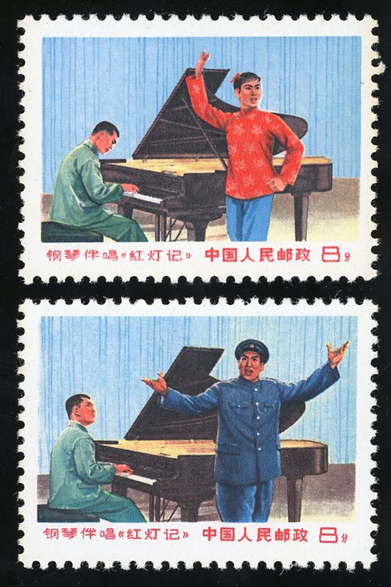 1969年文16鋼琴伴唱紅燈記新票1套,票面顏色鮮豔,齒孔完整,原膠,李鐵梅微黃,上中品