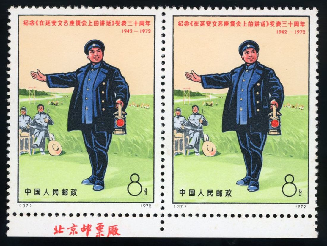 1972 (23 May) 30th Anniv. of Publication of 'Talks at the Yanan Forum on Literature and Art' (N8), horizontal marginal pair with imprint, toning, unmounted mint.