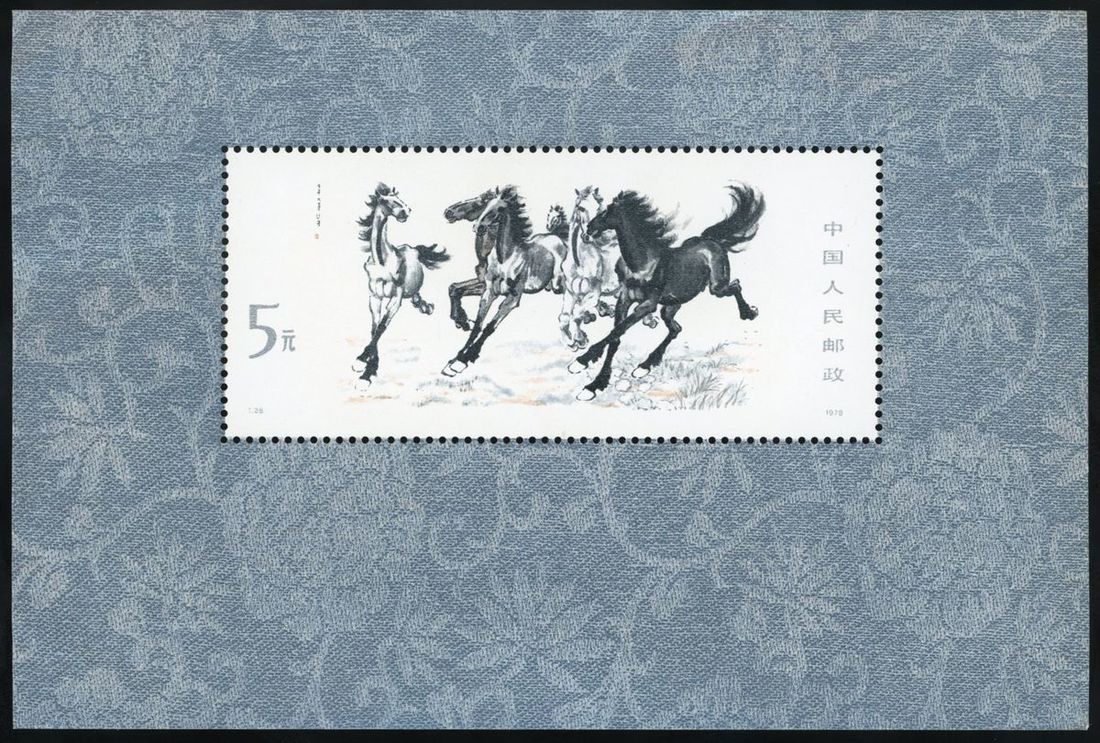 1979年T28M奔馬小型張新票1枚,票面顏色鮮豔,銀粉閃亮,四角尖,背微黃,上中品