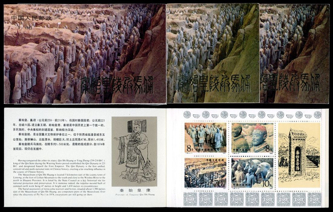 1983年SB9兵馬俑小本票4冊,全新,內頁完整,金粉閃亮,品相佳
