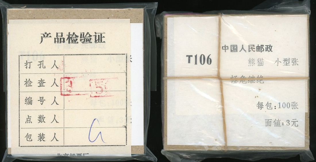 1985年T106M熊貓小型張2盒,共200枚,原封,保存完好