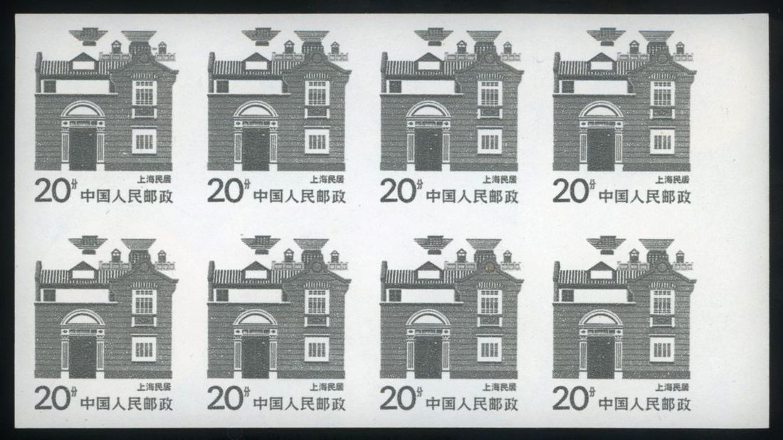 1986 (1 Apr.) Folk House 20f. Shanghai, imperf. and green omitted variety, block of eight with right margin, unmounted mint, very fine.