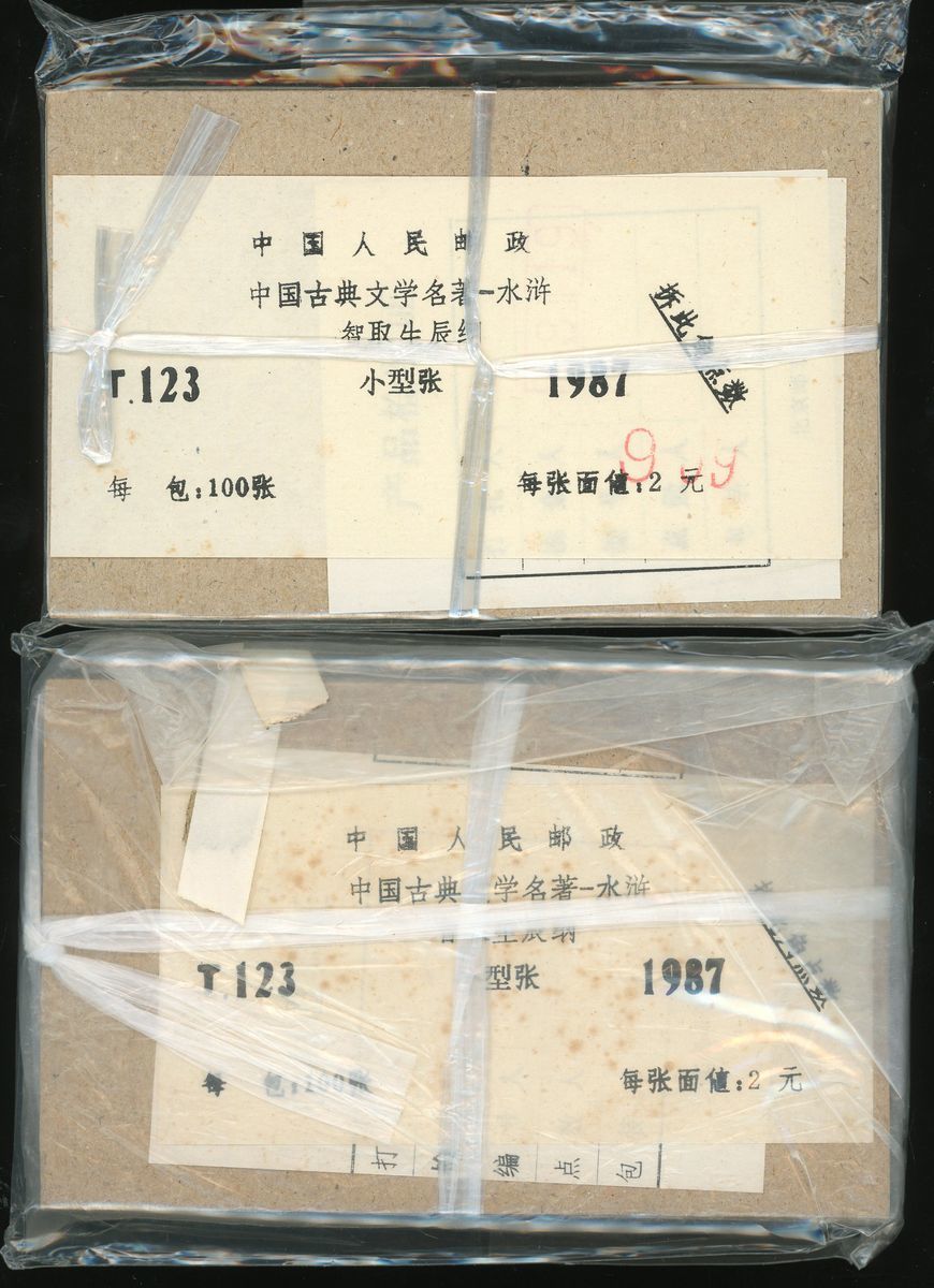 1987年T123M水滸傳第一組小型張2盒,共200枚,原封未拆,保存完好