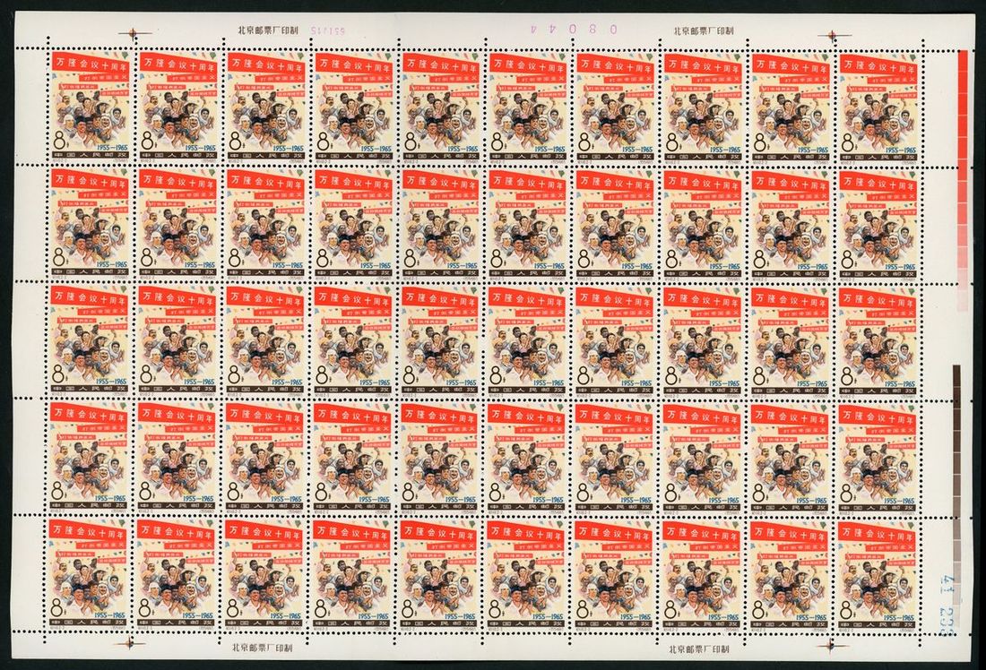 1965年紀110萬隆會議新票50枚全張1套,票面顏色鮮豔,邊紙完整,原膠,上中品