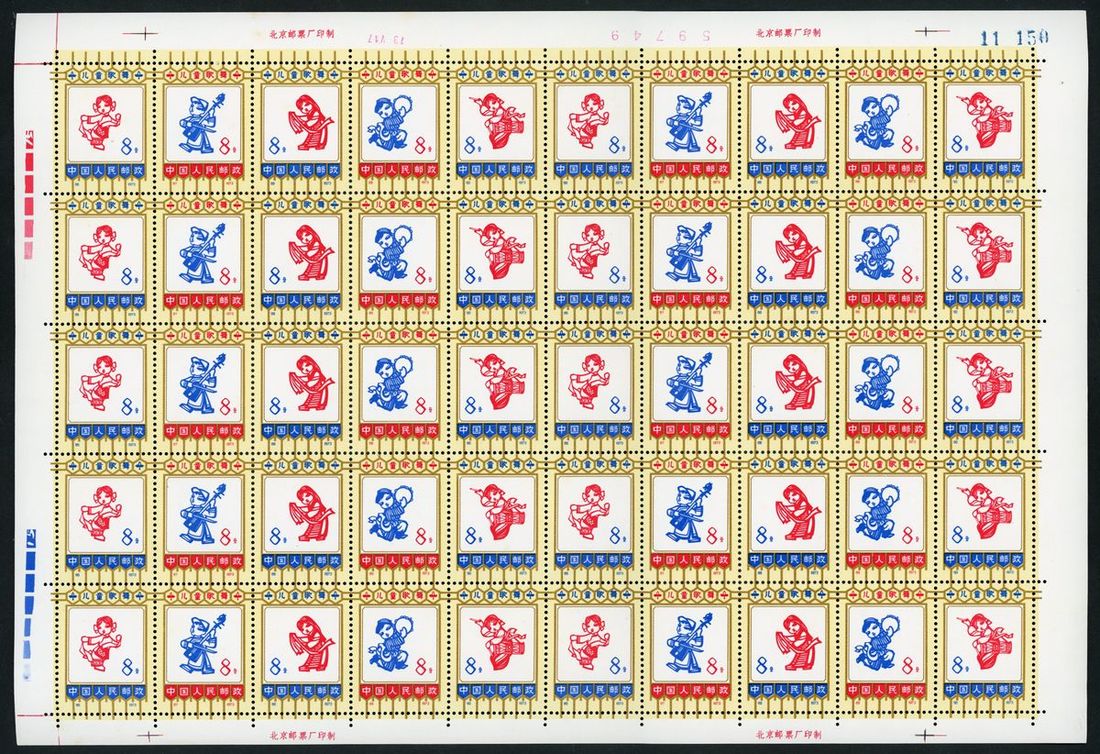 1973年編86-90兒童歌舞新票全張1版,票面顏色鮮豔,齒孔完整,原膠,微黃,上中品