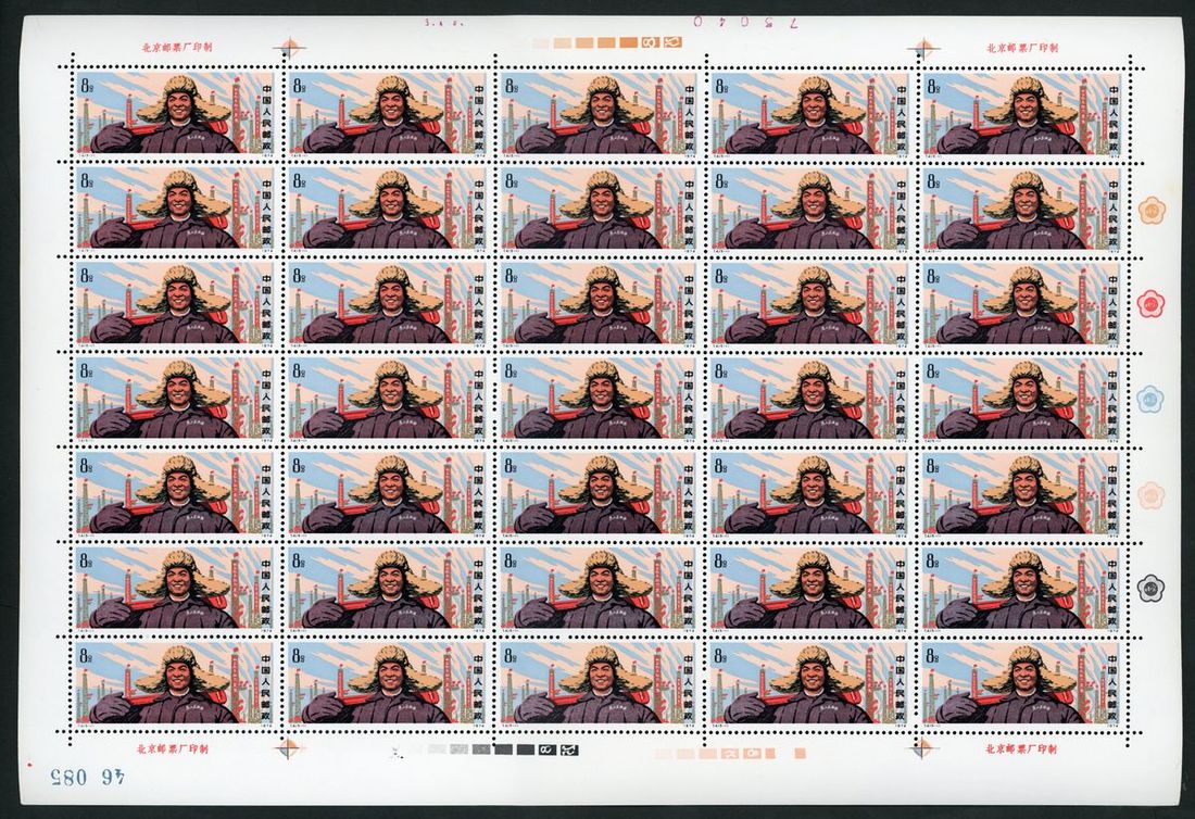 1974年T4大慶紅旗新票35枚全張1套,票面顏色鮮豔,邊紙完整,原膠,上中品