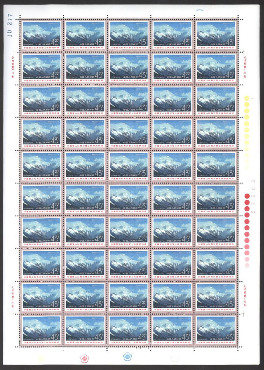 1975 (26 Sep.) 2nd Ascent of Everett by a Chinese Team (T15), 8f. to 43f. complete set of three in sheet of fifty, fresh and fine, some with toned spots. Yang T65-T67