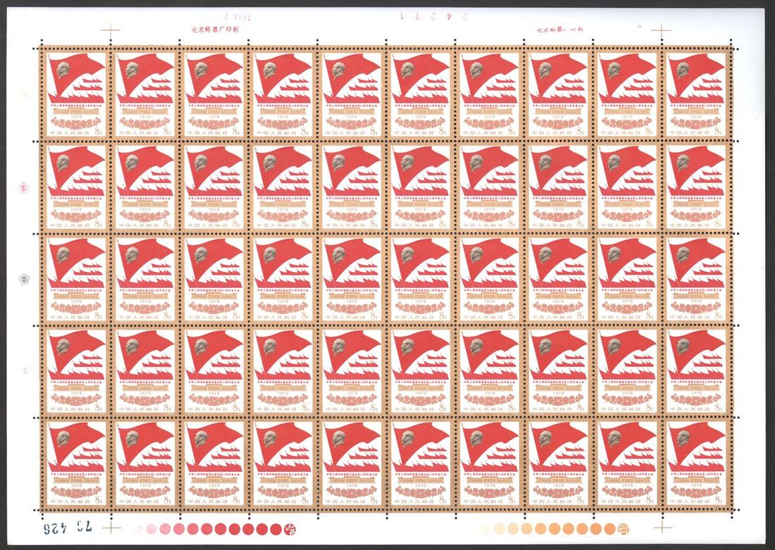 1977 (22 Aug.) The 5th National Congress of the Communist Party of China (J24) 8f. complete set of three in sheet of fifty, fresh and fine, some with toned spots. Yang J89-J91
