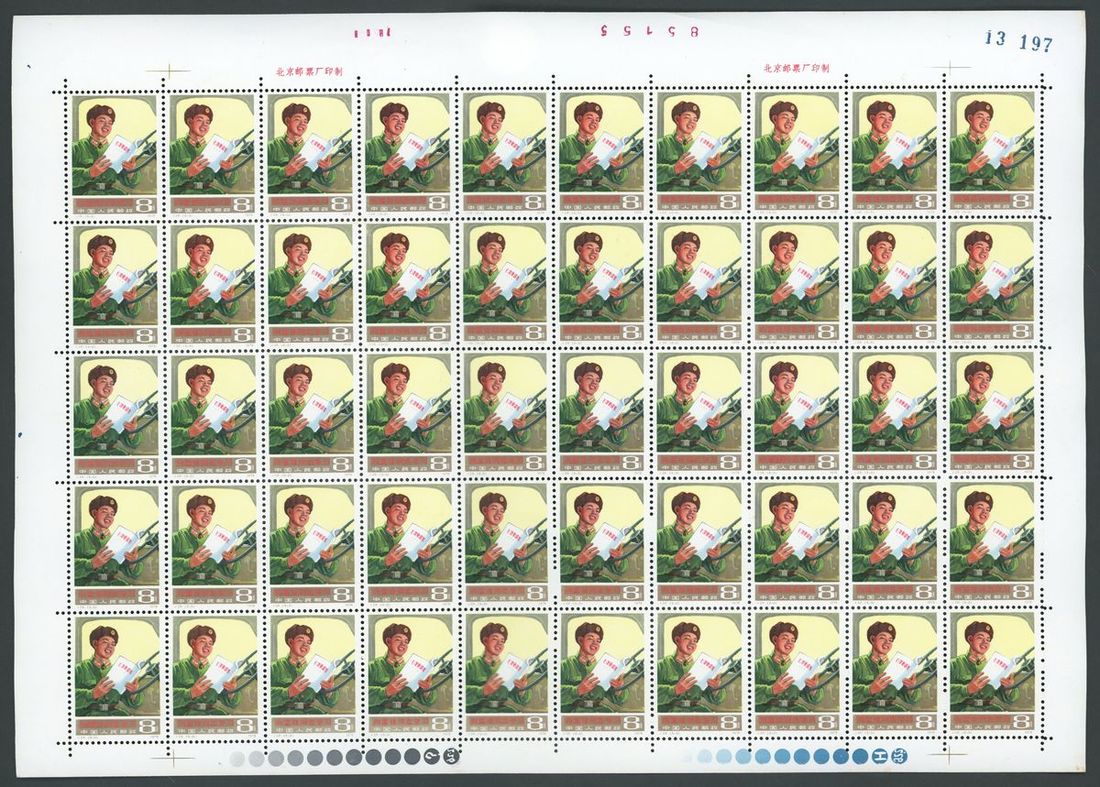 1978年J26雷鋒成套新票50枚全張1套,票面顏色鮮豔,金粉閃亮,邊紙完整,原膠,微黃,上中品