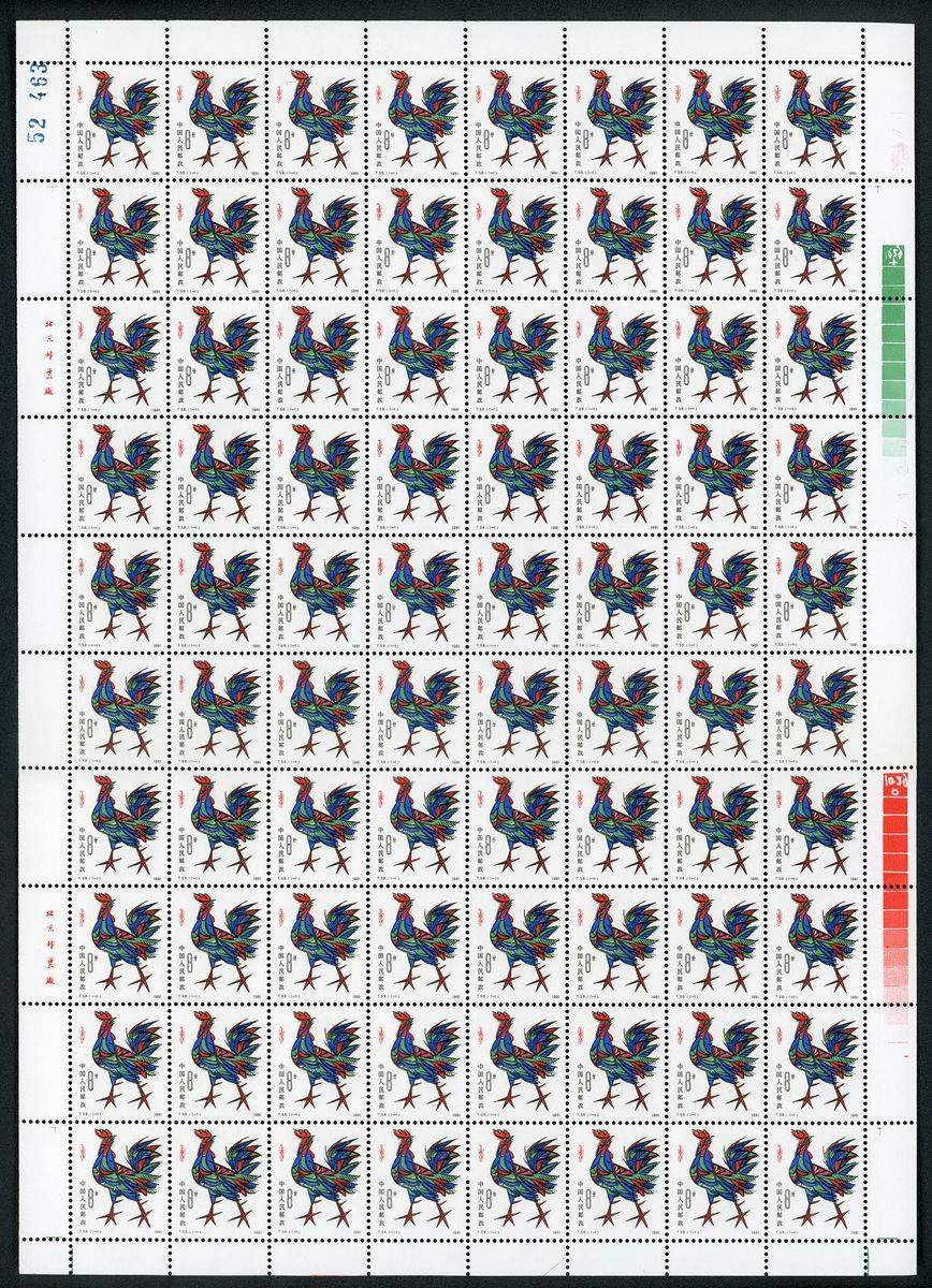 1981 (5 Jan.) Year of the Cock, Xinyou Year (T58), set of 1, sheet of 80, fine unmounted mint.