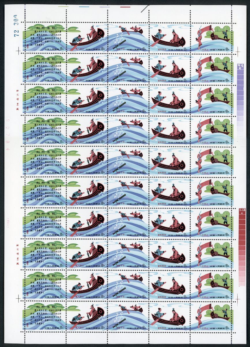1981年T59刻舟求劍新票50枚全張5版,票面顏色鮮豔,邊紙完整,原膠,上中品