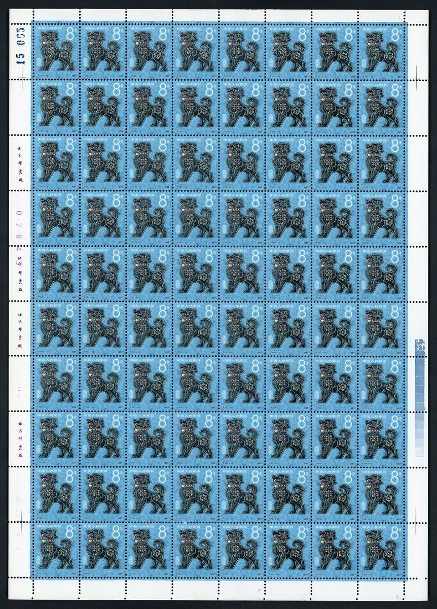 1982年T70壬戌年新票80枚全張1版,票面顏色鮮豔,邊紙完整,原膠,上中品