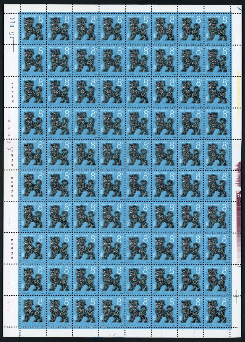1982年T70壬戌年新票80枚全張1版,票面顏色鮮豔,邊紙完整,原膠,上中品