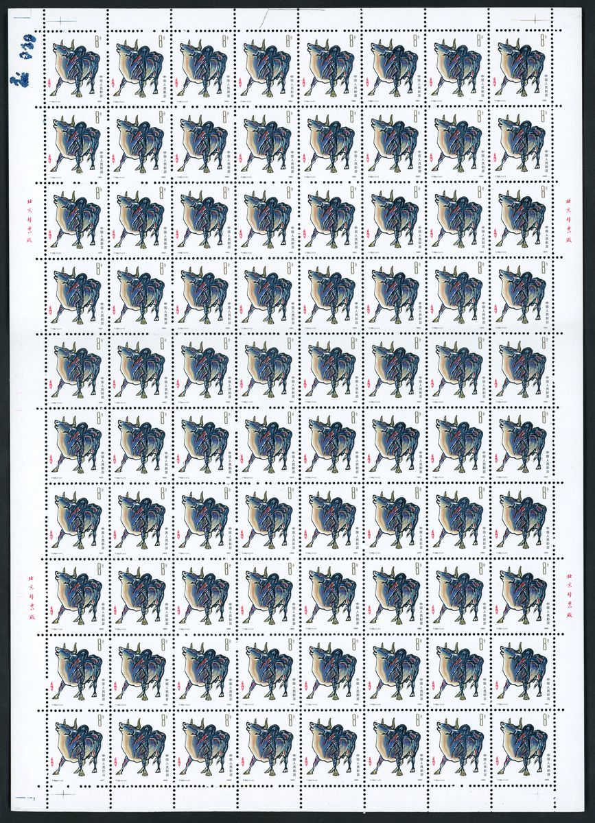 1985 (5 Jan.) T102 "Yichou Year. Year of the Ox", 8f., sheet of eighty x 5. Unmounted mount, fine.