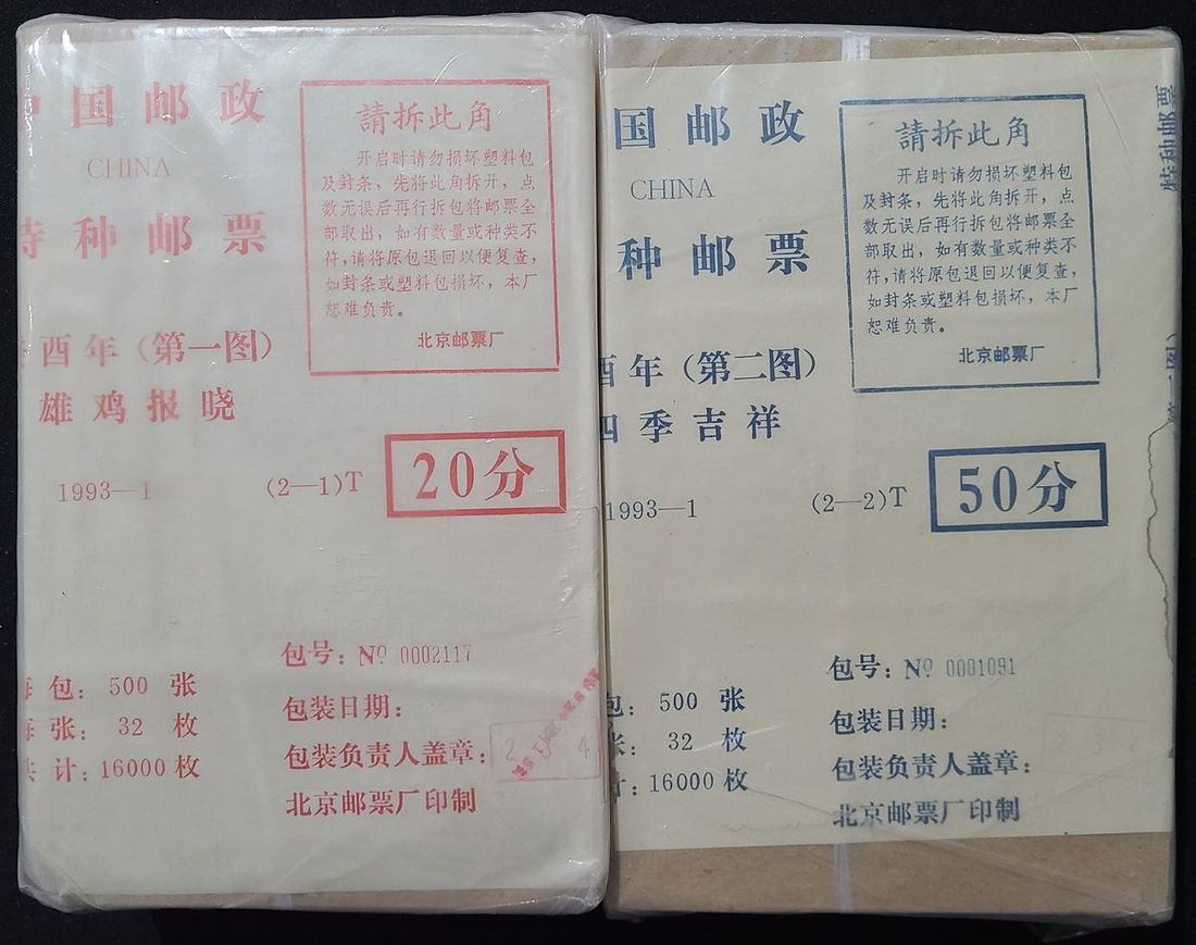 1993-1癸酉年新票全張1包500版,共16000套,原始包裝,原封未拆,保存完好