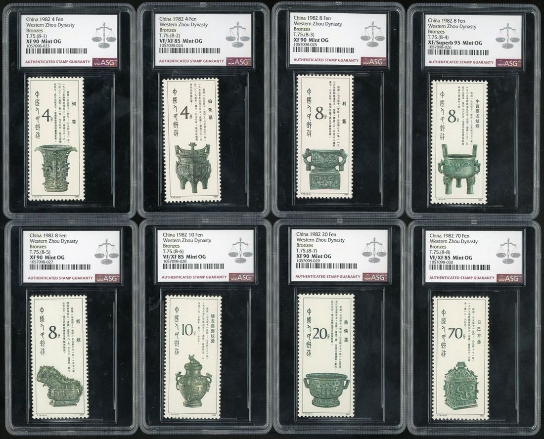 1982 (25 Dec.) T75 Bronzes of Western Zhou Dynasty complete set of eight, ASG, VF/XF85 to XF/SUPERB95, please review. Yang T373-T380