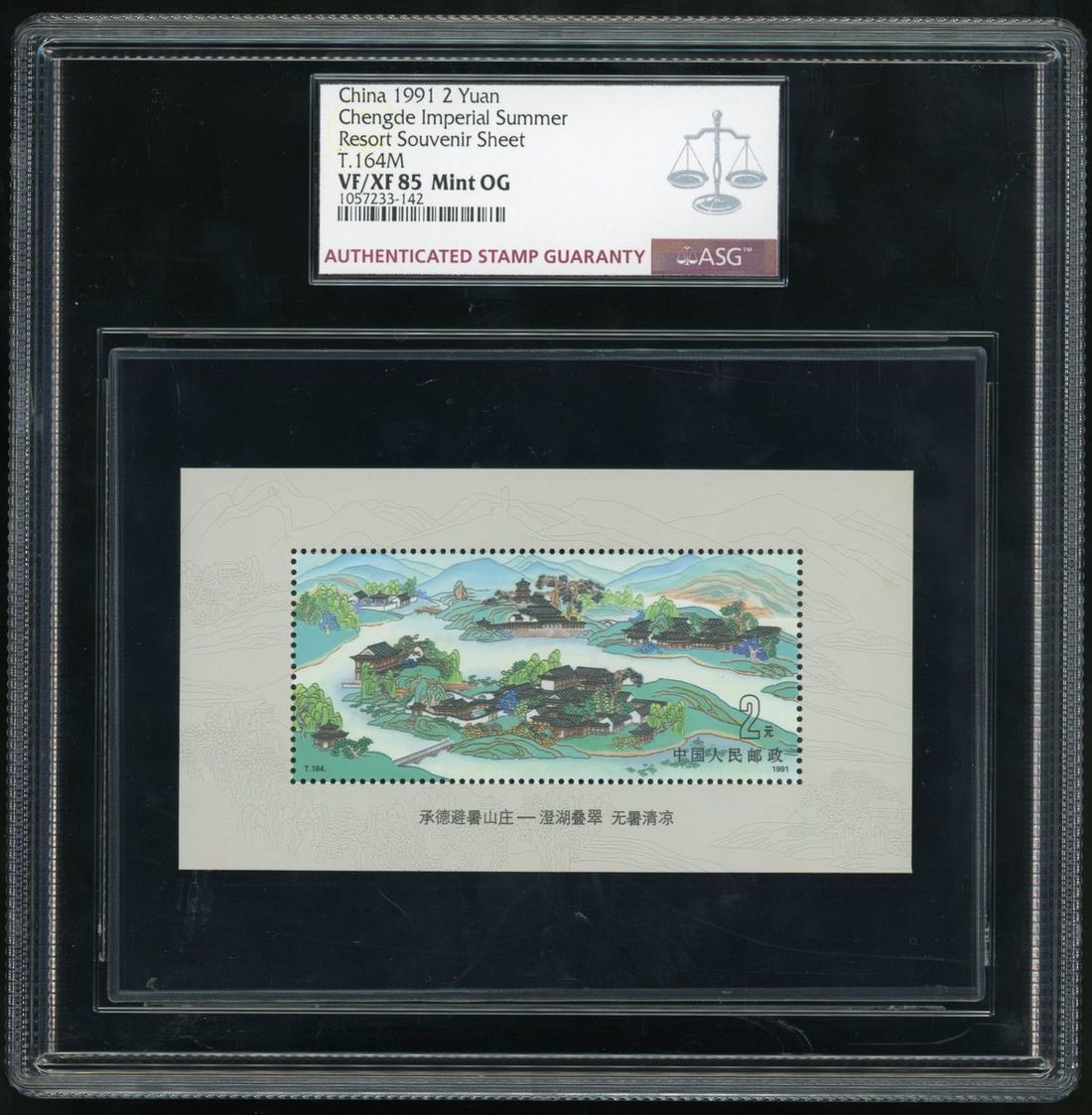1991年T164M避暑山莊小型張新票5枚,經ASG評級,均為VF/XF85