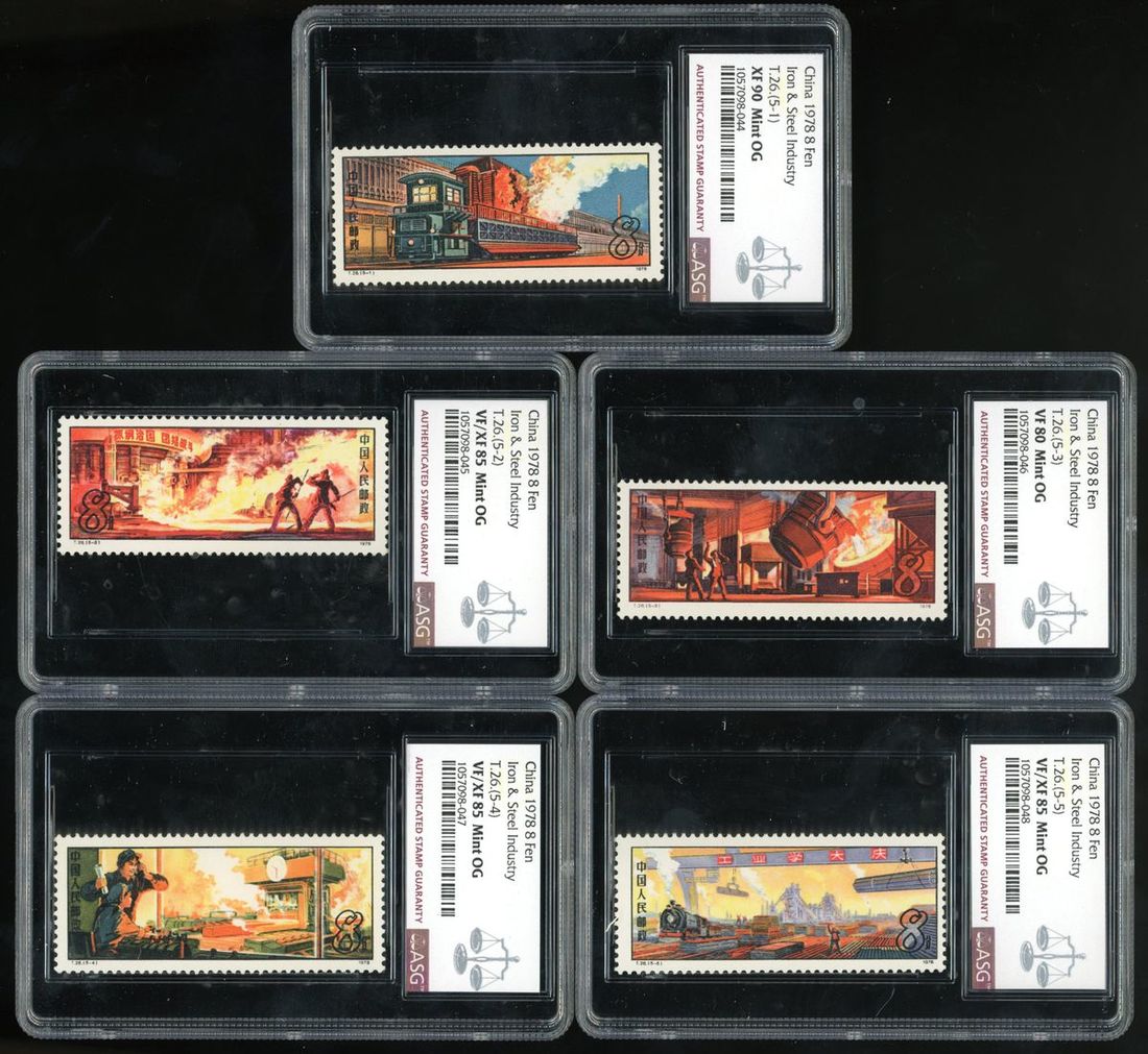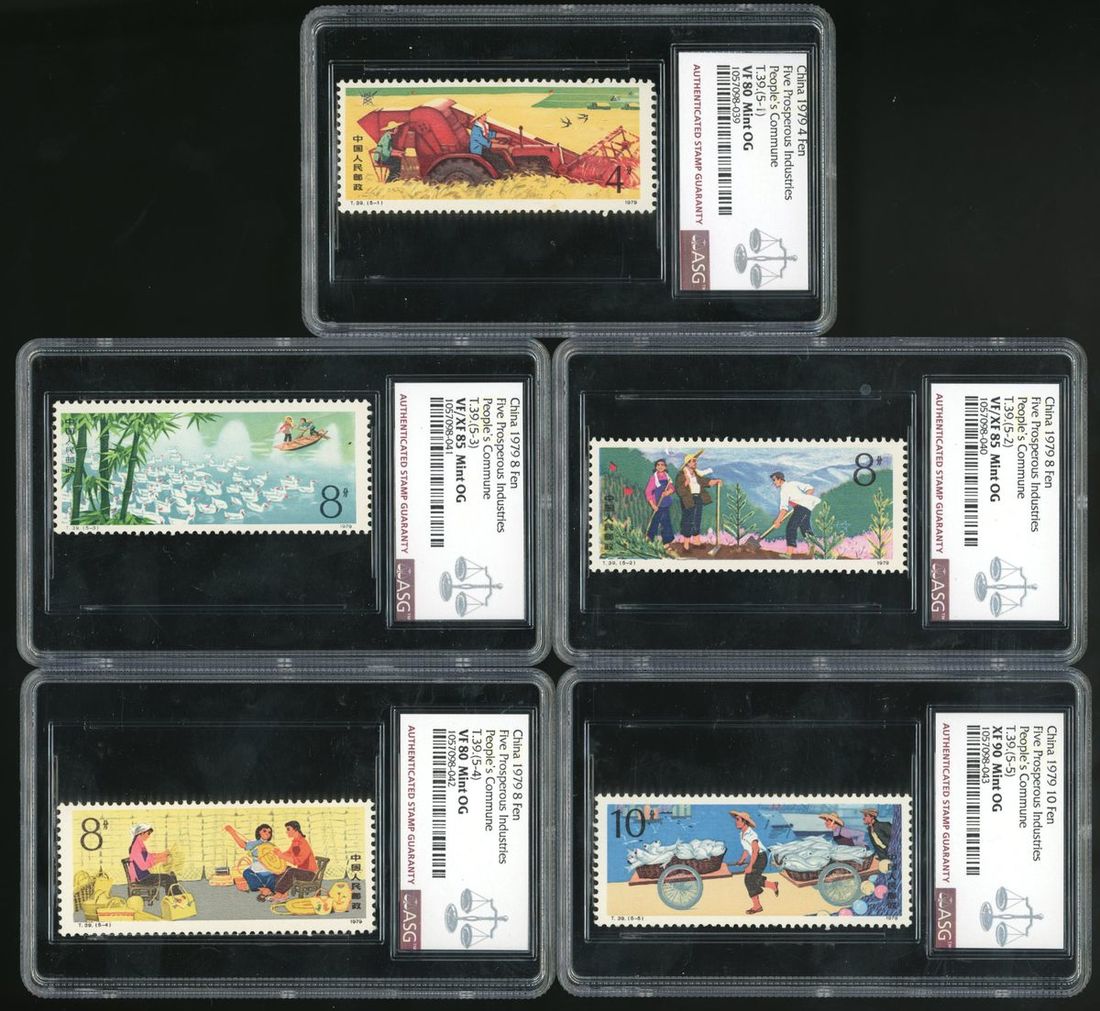1978-79年T39人民公社及T26鋼鐵工業新票各一套,均逐枚經ASG評級,分數從VF80至XF90不等,請預覽
