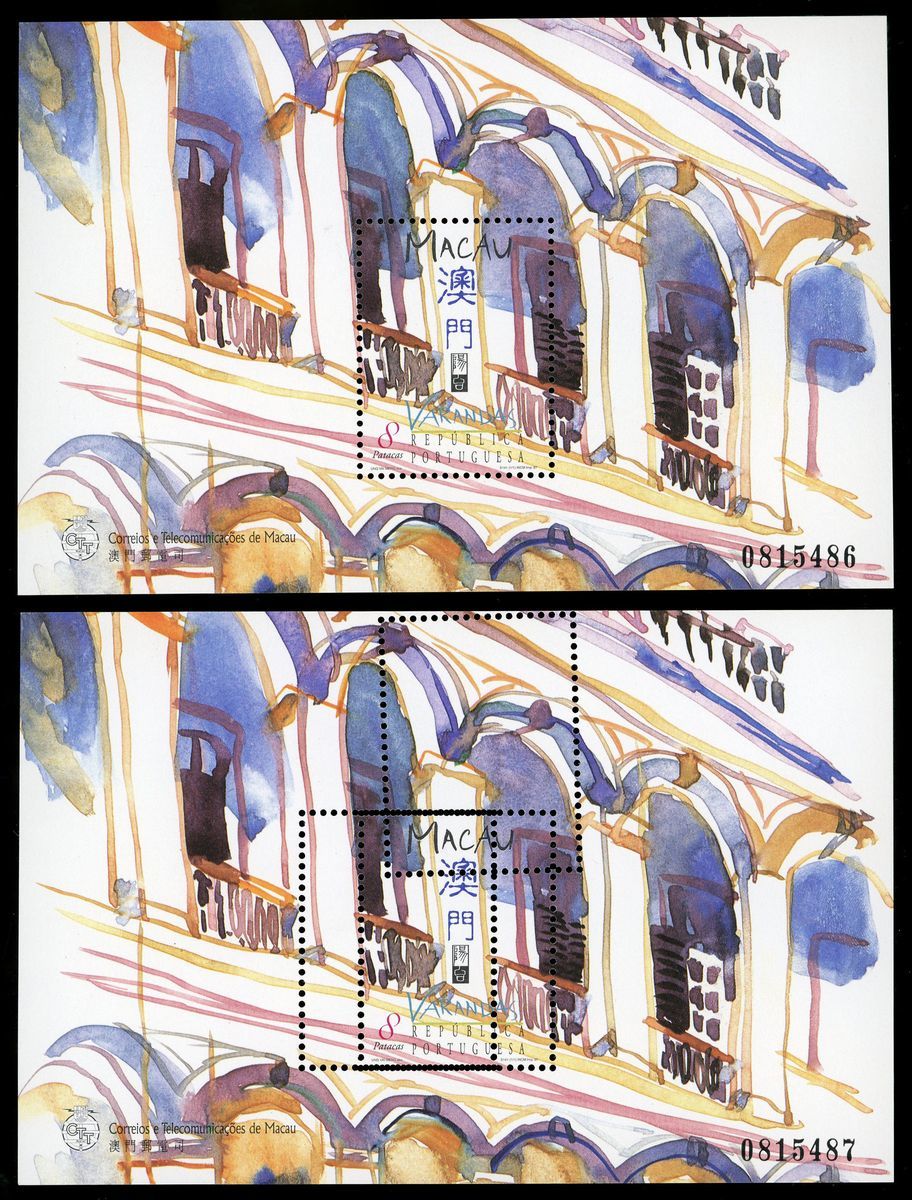 1997 (31 July) Verandas of Macau miniature sheet, with Triple perforation variety, one normal MS for comparison, fine unmounted mint.