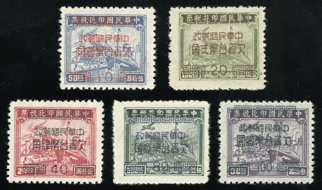 1953年臺灣印花稅票加蓋改作欠資新票1套,票面顏色鮮豔,加蓋字模清晰,齒孔完整,上中品