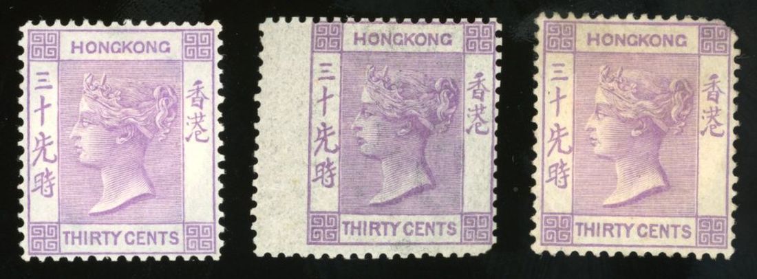 1863 Queen Victoria the 2nd issue, watermarked CC, 30c Mauve x 3, (3), mint.
