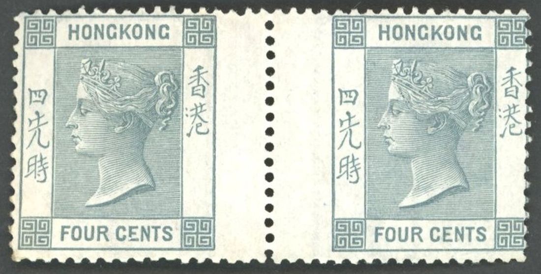 1863-74 wmk CC 4c. slate, gutter pair, mint with right and left wing margin, part of original gum, very fresh. Yang 9a