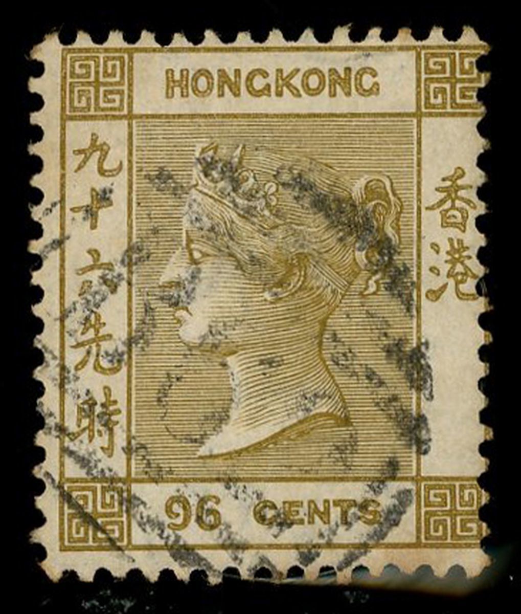 1865 watermarked CC 96c Olive-bistre, with "B62" obliterator in Black, Scarce, used.