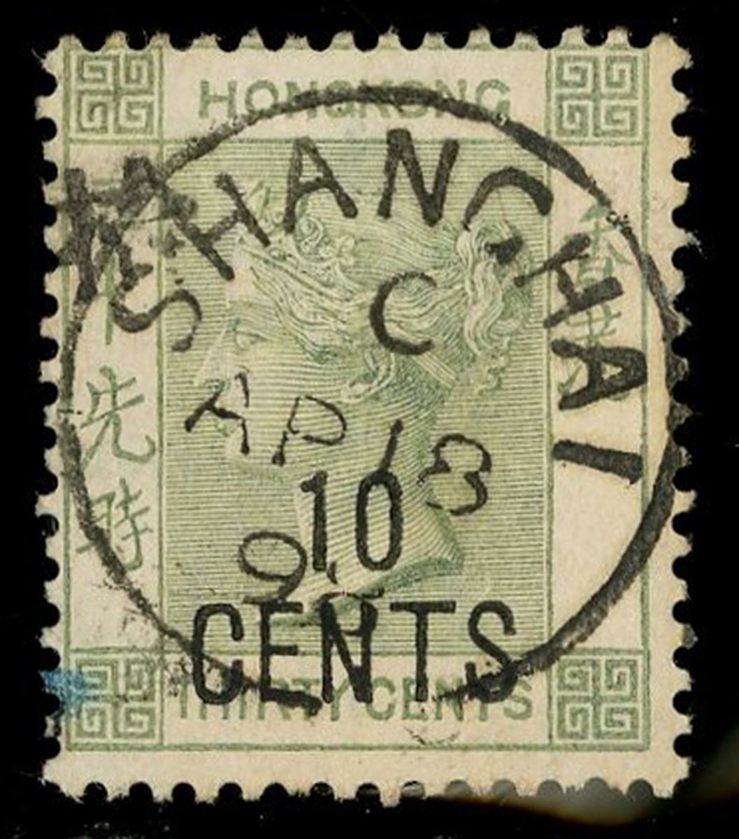 1898 10c on 30c Grey-green with Chinese Character in Large Type, with complete "SHANGHAI" c.d.s., Scarce, used.