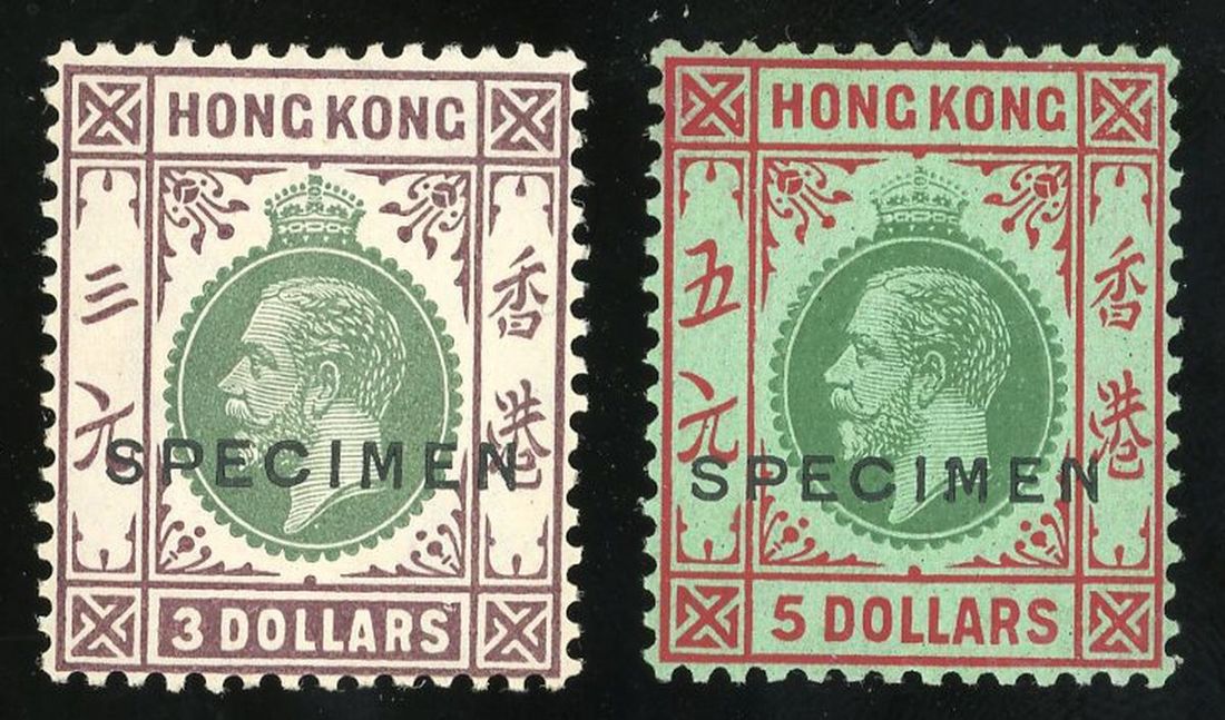 1921-37 1c. to $5 (15) overprinted or perfin "SPECIMEN", hinged, very fine.