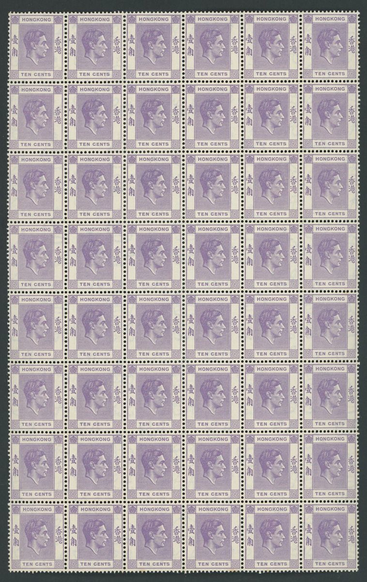 1941-46 the 2nd issue, war print perf. 14.5 x 14, 5c. green and 10c. violet, block of forty-eight, unmounted mint, even tone gum, fine. Yang 149,150