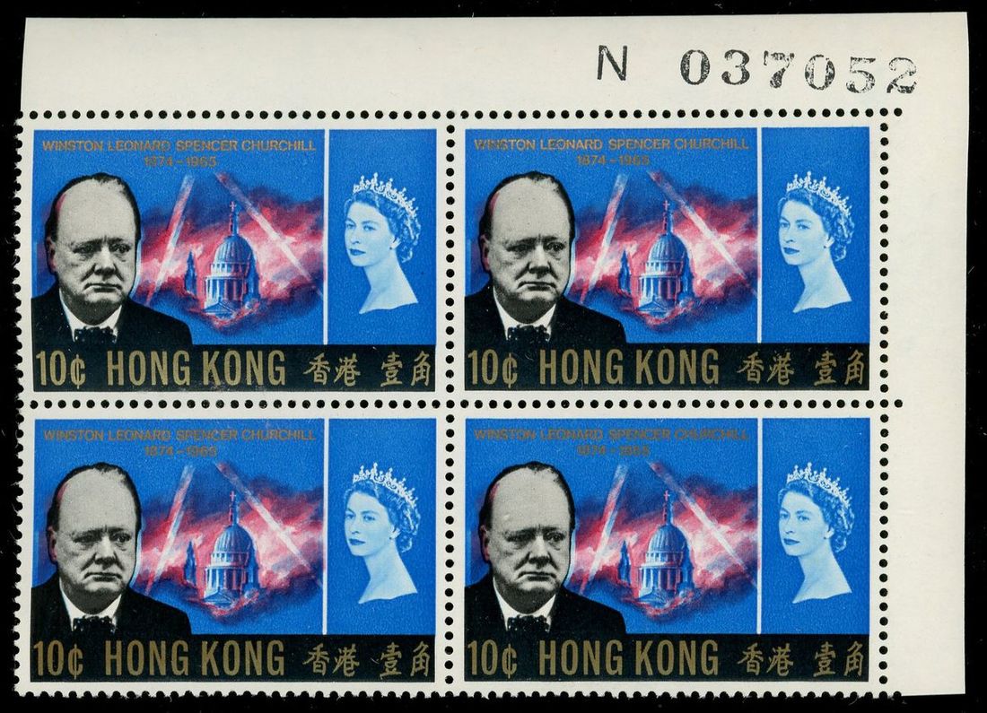 1966 (24 Jan.) Churchill 10c block of 4 x 4, with colour shift variety, toning, unmounted mint, (4).
