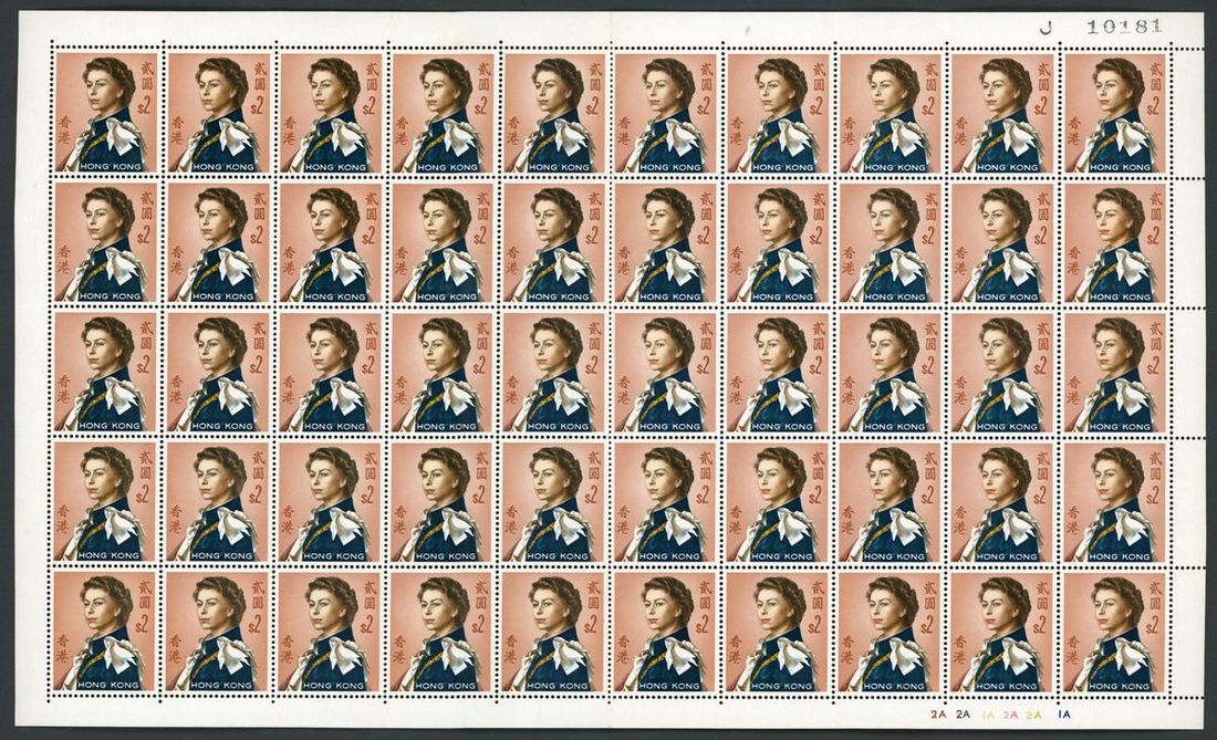 1971/73 Annigoni Portrait glazed paper $2 wmk to left variety, full sheet of one hundred,folded, lightly toning, fine. Yang 222a