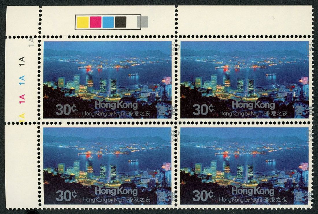 1983 (17 Aug.) Hong Kong By Night 30c Left Top corner block of 4, with SILVER PRINTING SHIFT TO RIGHT vaiety, fine unmounted mint.