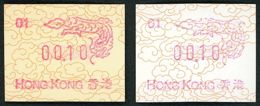 1988 (23 Mar.) Electronic Postage Label, Year of the Dragon, 10c on white paper "YELLOW OMITTED", with normal label for comparison, fine unmounted mint.