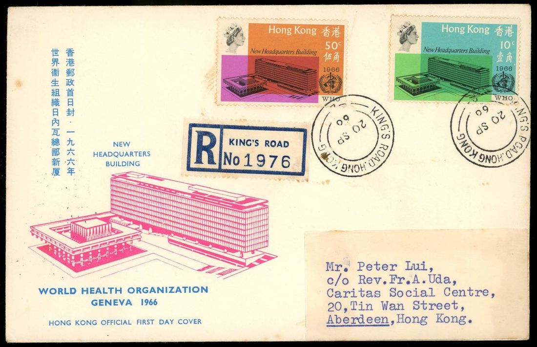 1966 (20 Sept.) W.H.O. first day cover to Local address by registered mail, with postmark date error, 20 SP "60" instead of "66".