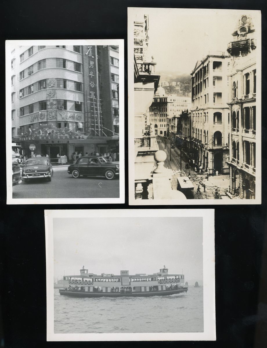 1910s-1960s Three photos of Hong Kong: Des Voeux Road Central in Central, George Street in Causeway Bay and Yau Ma Tei Ferry.